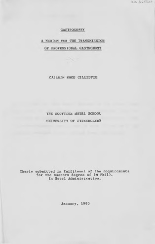 Gastrosophy : a medium for the transmission of professional gastronomy
