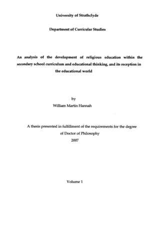An analysis of the development of religious education within the secondary school curriculum and educational thinking, and its reception in the educational world