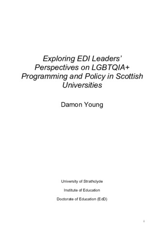 Exploring EDI leaders' perspectives on LGBTQIA+ programming and policy in Scottish Universities